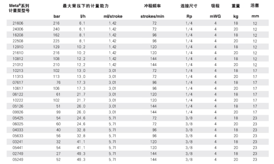 Meta电机计量泵选型: